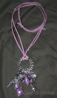Collana con pietre naturali, chiusura in cordino cerato scorrevole, colorata, estiva...